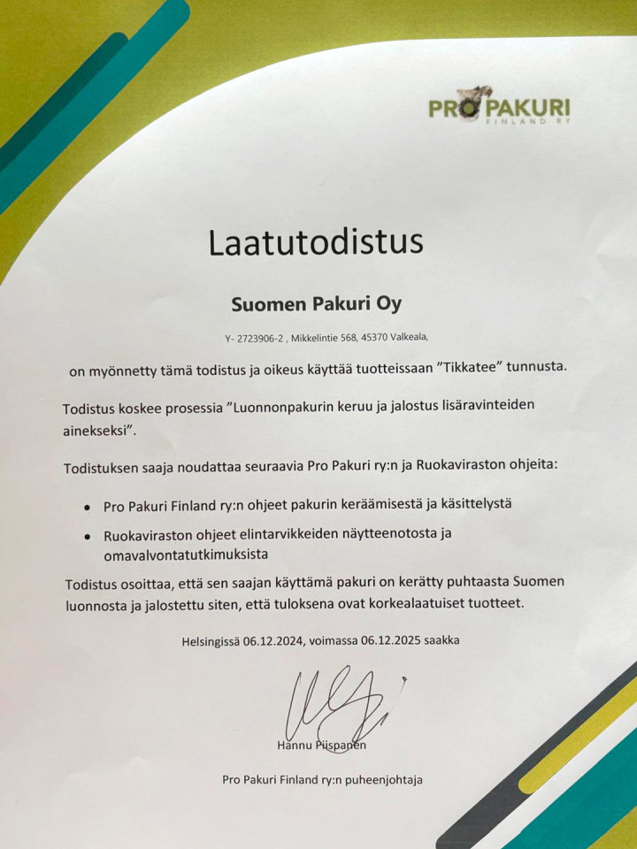 Tuotteemme on kerätty puhtaasta Suomen luonnosta ja jalostuksen tuloksena on korkealuokkaiset pakurituotteet.